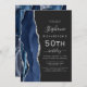 Navy Blue Silver Agate Dark 50th Birthday Party Invitation