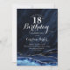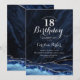 Navy Blue Silver Agate Marble 18th Birthday Invitation
