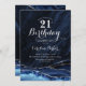 Navy Blue Silver Agate Marble 21st Birthday Invitation