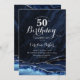 Navy Blue Silver Agate Marble 50th Birthday Invitation