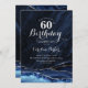 Navy Blue Silver Agate Marble 60th Birthday Invitation