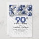 Navy Blue Silver Balloon Glitter 90th Birthday Invitation