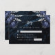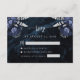 Navy Blue Silver Floral Agate Script Wedding RSVP Enclosure Card
