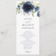 Navy Blue and Silver Floral Watercolor Wedding Ceremony Programs: This wedding program features a beautiful navy blue floral watercolor bouquet at the top. The back has room for your wedding party along with a thank you or in memory message at the bottom.