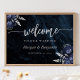 Navy Blue Silver Floral Wedding Welcome Poster