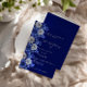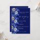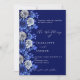 Navy blue silver florals script luxury wedding invitation