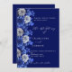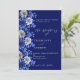 Navy blue silver florals script wedding invitation