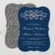 Navy Blue Silver Flourish Wedding Invitation