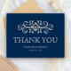 Navy Blue Silver Flourish Wedding Thank You Postcard