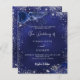 A navy blue background, decorated with faux silver glitter, sparkles and blue florals. The blue color is uneven. Personalize and add your names and details.