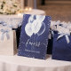 Navy blue silver glitter balloons favors guest pedestal sign