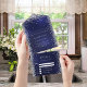 A navy blue background, decorated with white and faux silver glitter sparkles on the inside. The blue color is uneven. Personalize and add names, party details, RSVP date, return address and name.