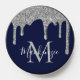 Navy Blue Silver Glitter Drips Sparkle Monogram PopSocket