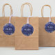 The sticker is made on wonderful paper and had no problem sticking to the bag that I purchased to put it on. I wanted to find a design that would be cute for the bride and groom and this one fit the bill as it has cute "bees" buzzing around and the wedding was taking place in a town called "Bee Cave". The packaging was great and protected the stickers. The website is easy to navigate and there are so many color choices. I had no problem finding a color that the bride was using on everything else selected. The design was adorable and there were many to choose from. You can make the figure as larger or smaller and you can place the photo and writting whereever you want to in the sticker. The printing is fabulous..better than expected.