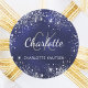 Navy blue silver glitter dust monogram name classic round sticker