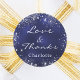 Navy blue silver glitter dust monogram thank you classic round sticker