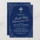 Navy Blue Silver Glitter First Holy Communion Invitation