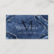 Modern Elegant Chic Navy Blue Silver Gray Glitter Marble Agate Monogram Business Card