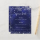 A navy blue background, the blue color is uneven. Decorated with faux silver glitter, sparkles. With the text: Open bar. Personalize and add your bar menu. White text.