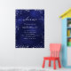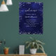 A navy blue background, decorated with faux silver glitter sparkles. The blue color is uneven. Personalize and add your names and the wedding program.