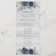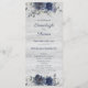 Navy Blue Silver Gray Watercolor Floral Wedding Program