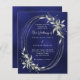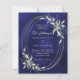 Navy blue silver greenery wedding invitation