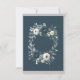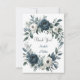 A sophisticated wedding featuring a navy blue watercolor floral wreath adorned with lush peonies, roses, and eucalyptus greenery in shades of navy blue, green, and ivory. The design is enhanced by a silver-gray printed box beneath the wreath with modern font text layout. The back of the invitation continues the theme with a matching floral arrangement for a cohesive and elegant look. Perfect for couples seeking timeless and classy wedding stationery.