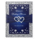 Navy Blue, Silver Joined Hearts Floral Notebook
