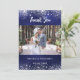 Celebrate your special day and express your heartfelt gratitude with our Custom Photo Wedding Cards, elegantly designed with a sophisticated navy blue, uneven colored background and adorned with faux silver glitter. Perfect for sharing your favorite wedding memories, these cards are both stylish and personal, offering a unique way to thank your guests. Personalize and add your photo and thank you note. White text.