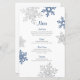 Navy Blue Silver Snowflake Winter Wedding Menu