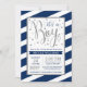 Navy Blue Silver Stripes Boy Baby Shower Invitation