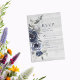 Navy Blue Silver Watercolor Floral RSVP Wedding