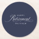 Navy Blue Simple Elegant Retirement Party Round Paper Coaster