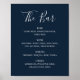 Navy blue simple script wedding drinks bar menu poster