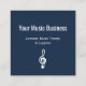 Music lessons business card, on a navy blue background and a white treble clef symbol. With customizable lettering, you can add your own information. You also add your website to allow for connection with a QR code. Great for promoting your musical business.