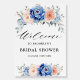 Navy blue blush pink floral bridal shower welcome foam board featuring elegant bouquet of navy blue, royal blue , white , blush garden rose, hydrangea, and sage green eucalyptus leaves. Please contact me for any help in customization or if you need any other product with this design.