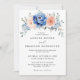 Navy Blue Slate Dusty Blush Pink Floral Wedding Invitation