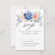 Navy Blue Slate Dusty Blush Pink Floral Wedding RSVP Card