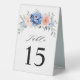 Navy blue blush pink floral wedding table number tent sign featuring elegant bouquet of navy blue, royal blue , white , blush garden rose, hydrangea, and sage green eucalyptus leaves. Please contact me for any help in customization or if you need any other product with this design.