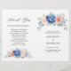 Navy blue blush pink floral wedding program featuring elegant bouquet of navy blue, royal blue , white , blush garden rose, hydrangea, and sage green eucalyptus leaves. Please contact me for any help in customization or if you need any other product with this design.