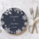 Navy Blue Snowflakes Winter Wedding Paper Plates