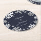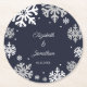 Navy Blue Snowflakes Winter Wedding Round Paper Coaster