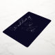 A beautiful solid color Navy Blue wedding invitation with a silver foil front.