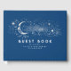 Starry night and crescent moon night scene navy blue and silver wedding guest book