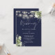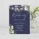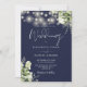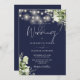 Navy Blue String Lights Floral Monogram Wedding Invitation