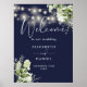 Navy Blue String Lights Floral Wedding Welcome Poster