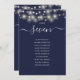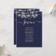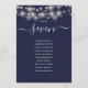 These elegant navy blue double-sided table number seating chart cards featuring pretty string lights are perfect for all celebrations. Designed by Thisisnotme©
