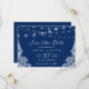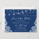 Navy Blue String Lights White Lace | Save the Date Card.