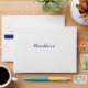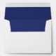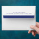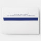 Invitation and announcement mailing envelopes with printed return address and a navy blue stripe on the back flap and inside.