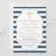 Navy Blue Striped Gold Cross First Holy Communion Invitation